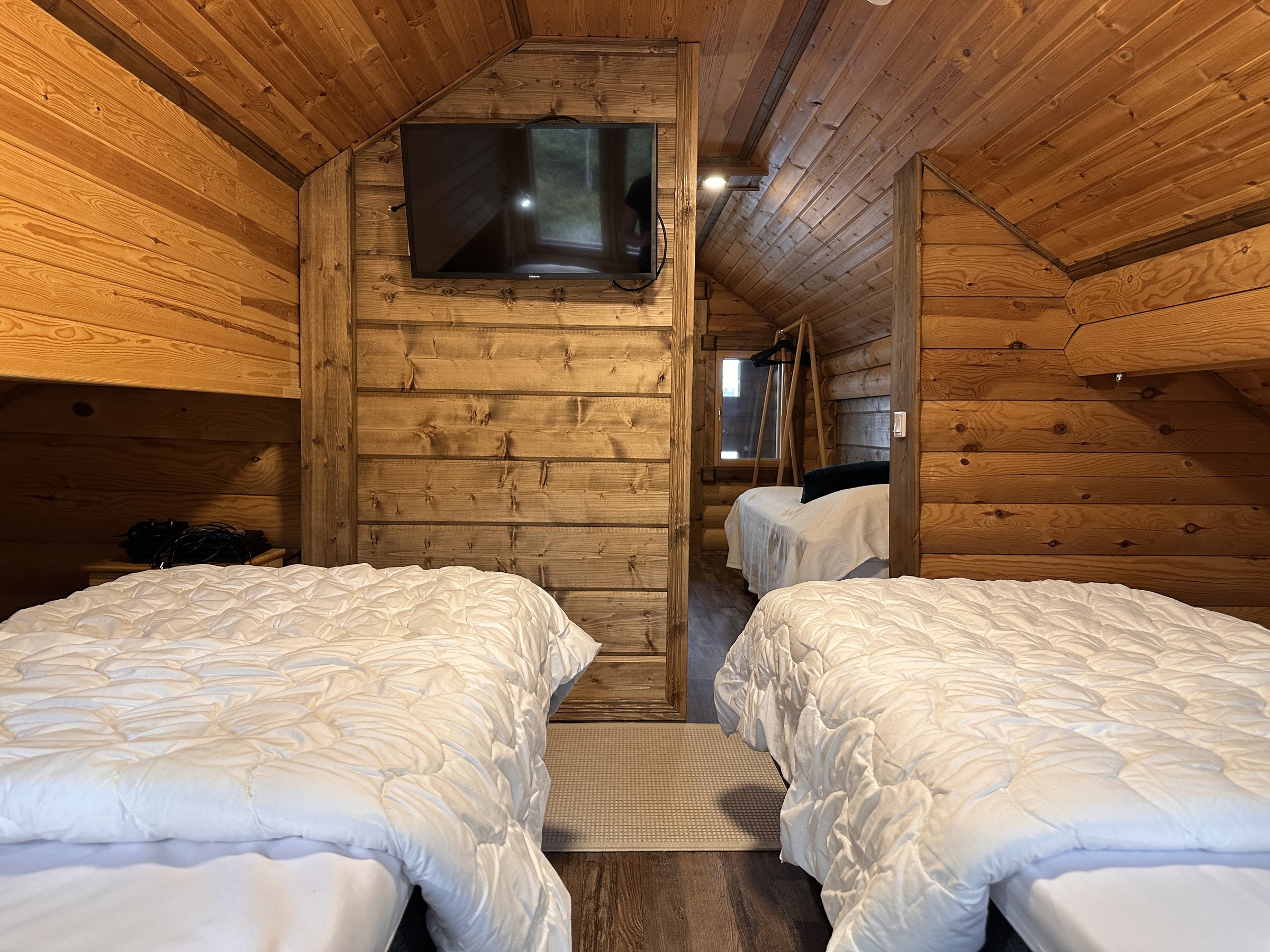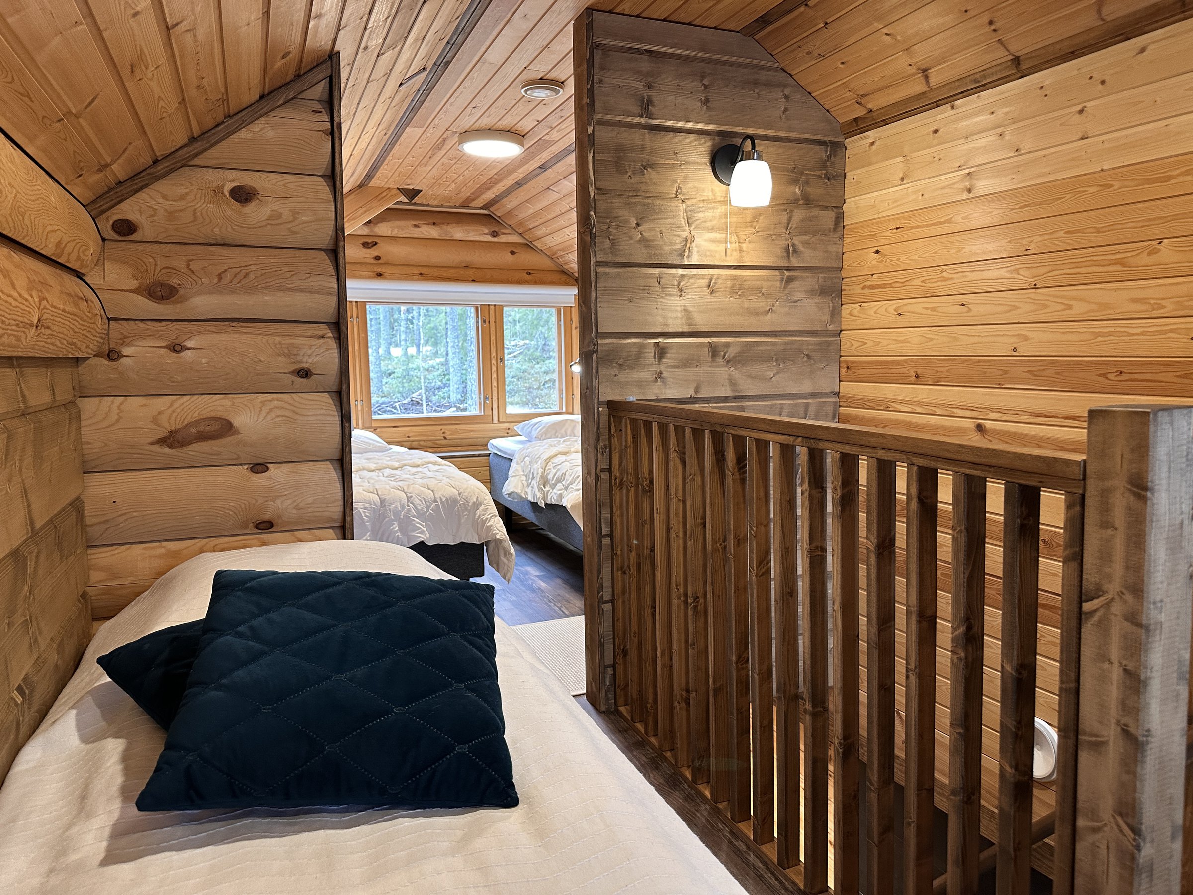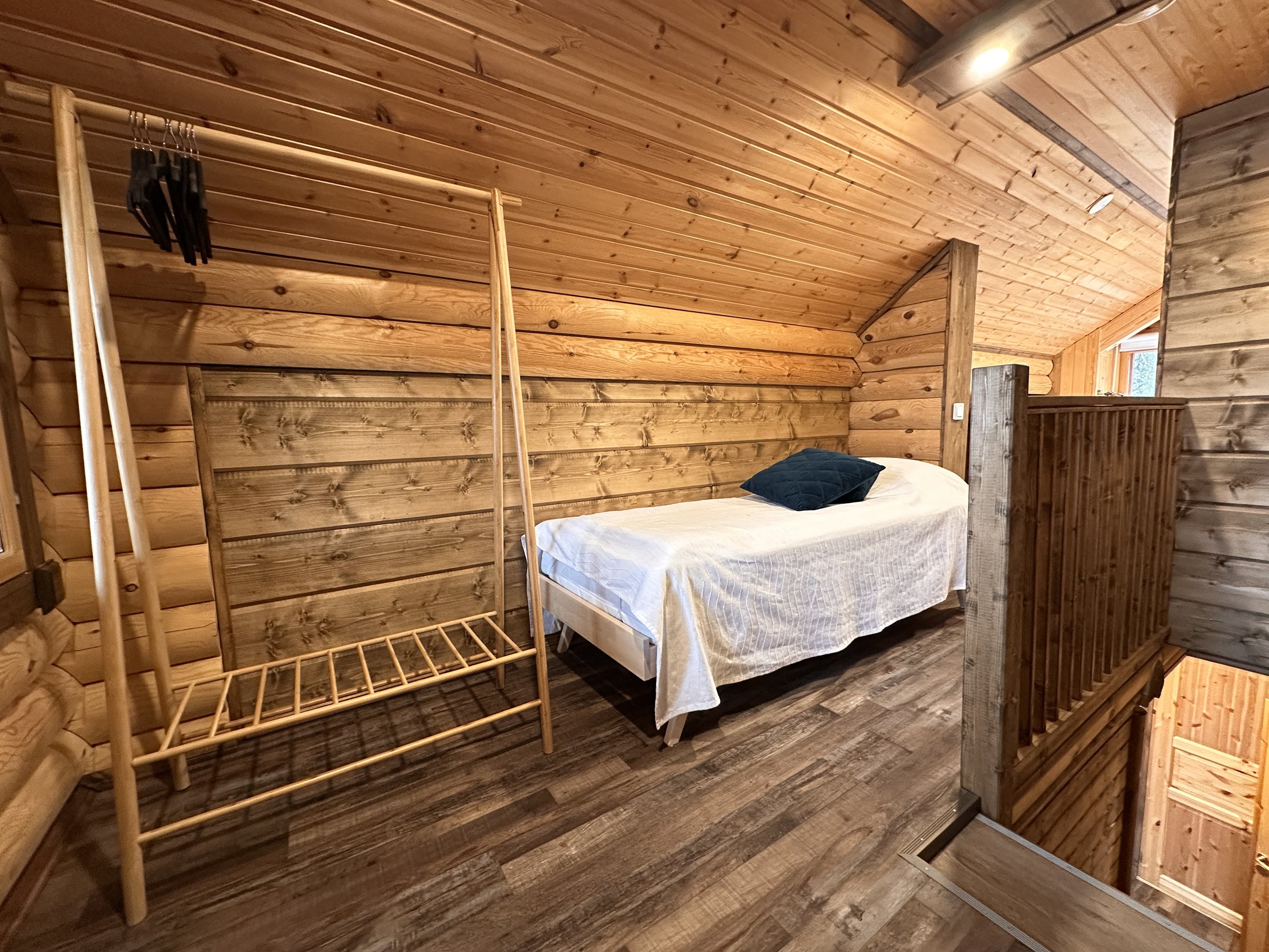 As you step inside, you’ll find a spacious ground-floor bedroom fitted with a luxurious 180 cm double bed, while the upper level features three single beds, two of which can effortlessly convert into a cozy double. The loft space, accessible via gentle stairs, offers a high ceiling that comfortably accommodates adult guests, ensuring a restful night for everyone. After a day of adventures, indulge in the warmth of the wood-heated sauna or unwind in the outdoor Jacuzzi as you gaze up at the starry northern sky, perhaps even catching a glimpse of the mesmerizing auroras.