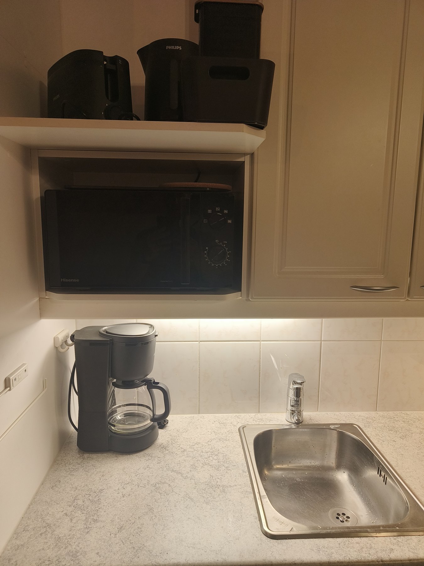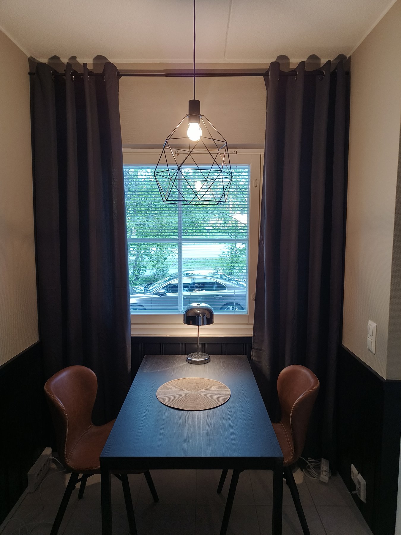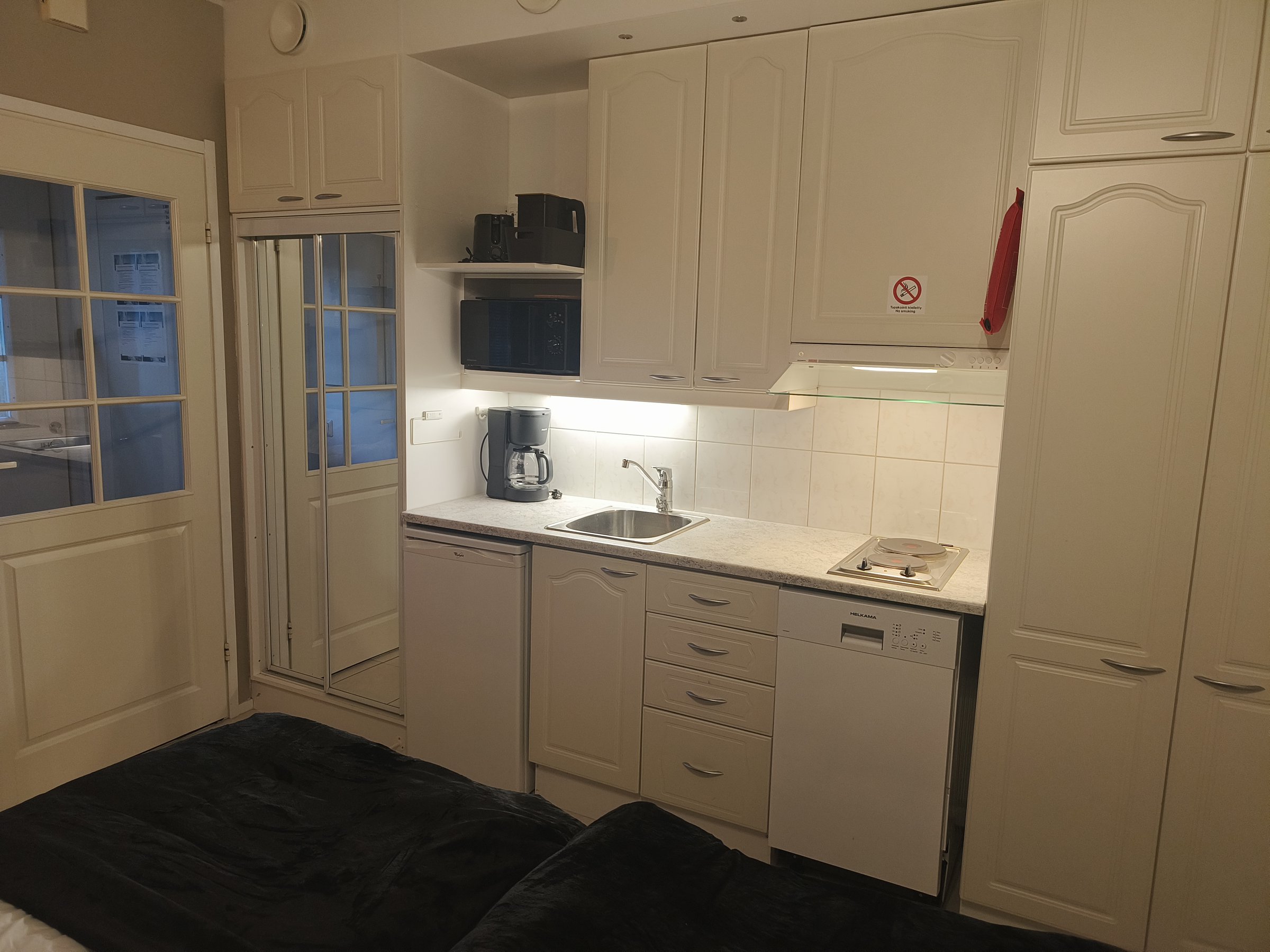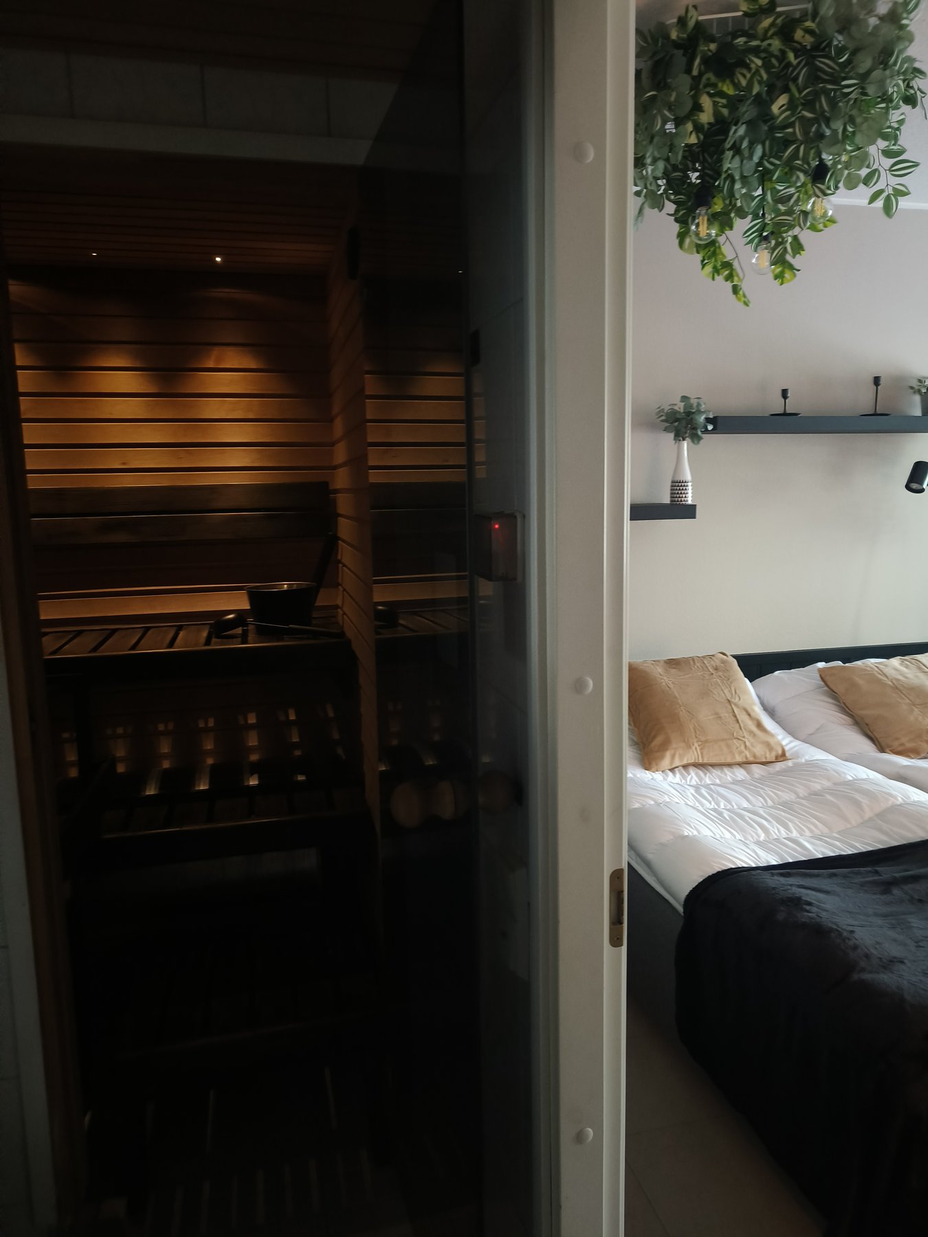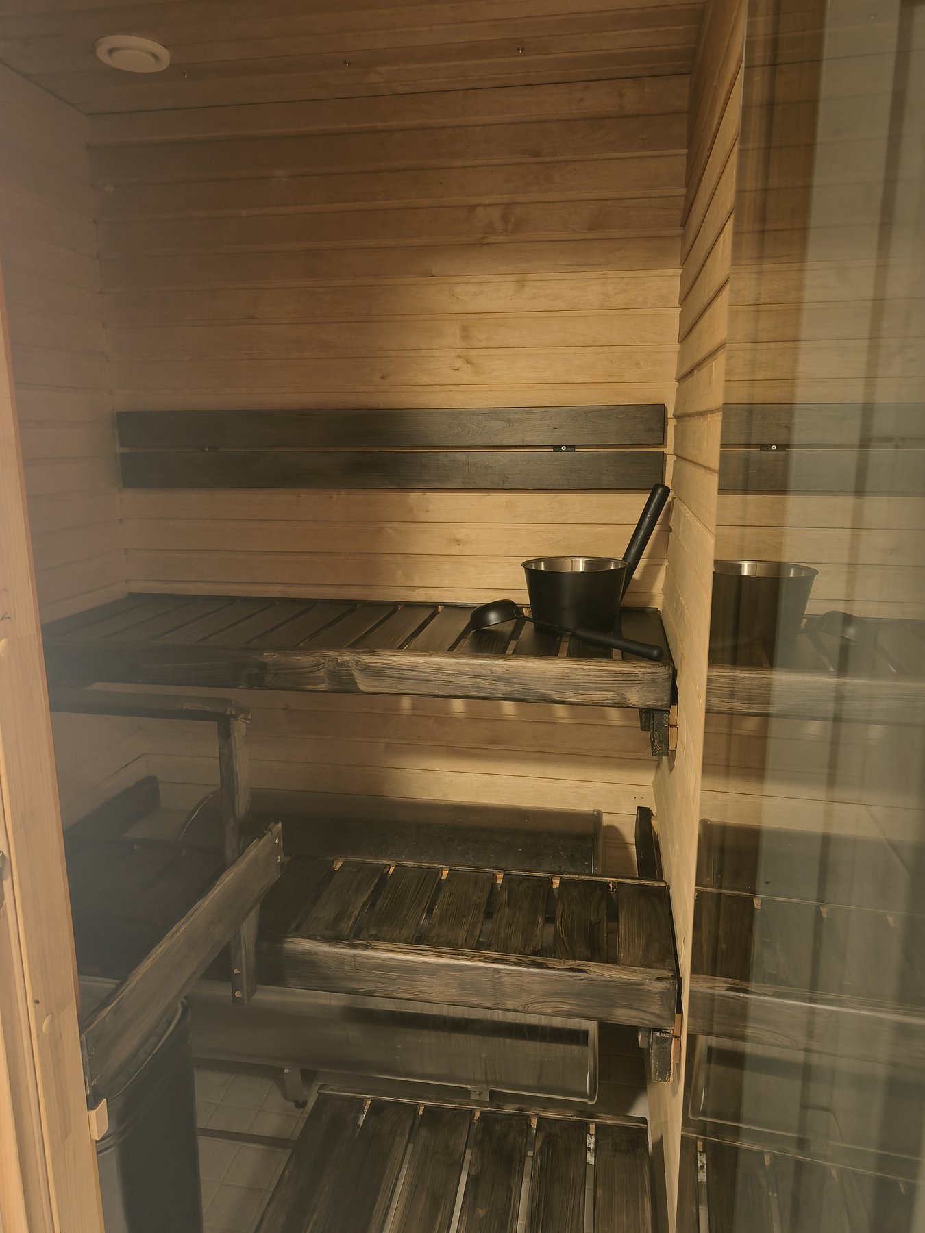 This delightful ground-floor apartment boasts all the essentials, including your very own electric sauna, making it a perfect retreat for two. Its compact design maximizes space without compromising on functionality. You will find a cozy combined living area and kitchenette, complete with a small dining table, where you can enjoy meals or simply unwind while planning your day of adventures. The apartment is located in a tranquil setting, just a short stroll away from the vibrant center of Levi, where restaurants, shops, ski slopes, and relaxation at the spa await.