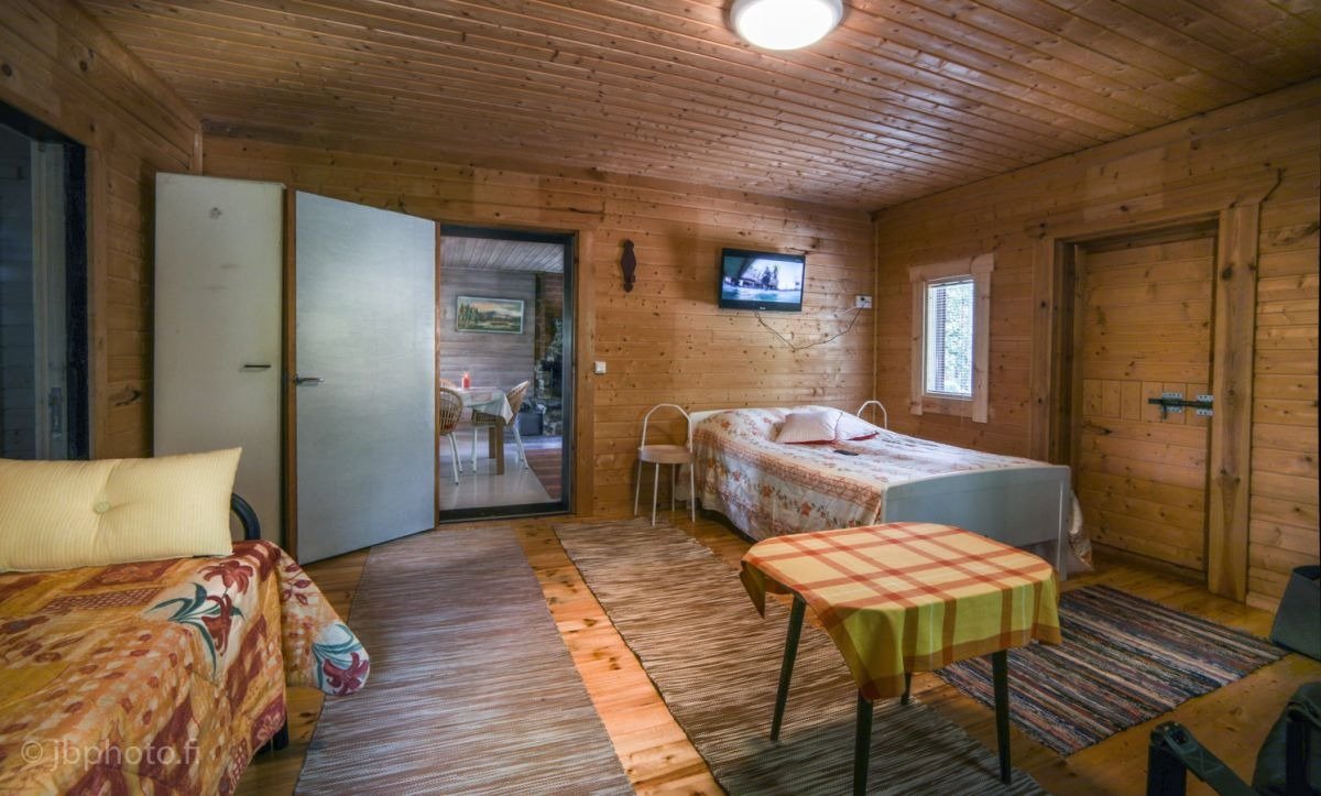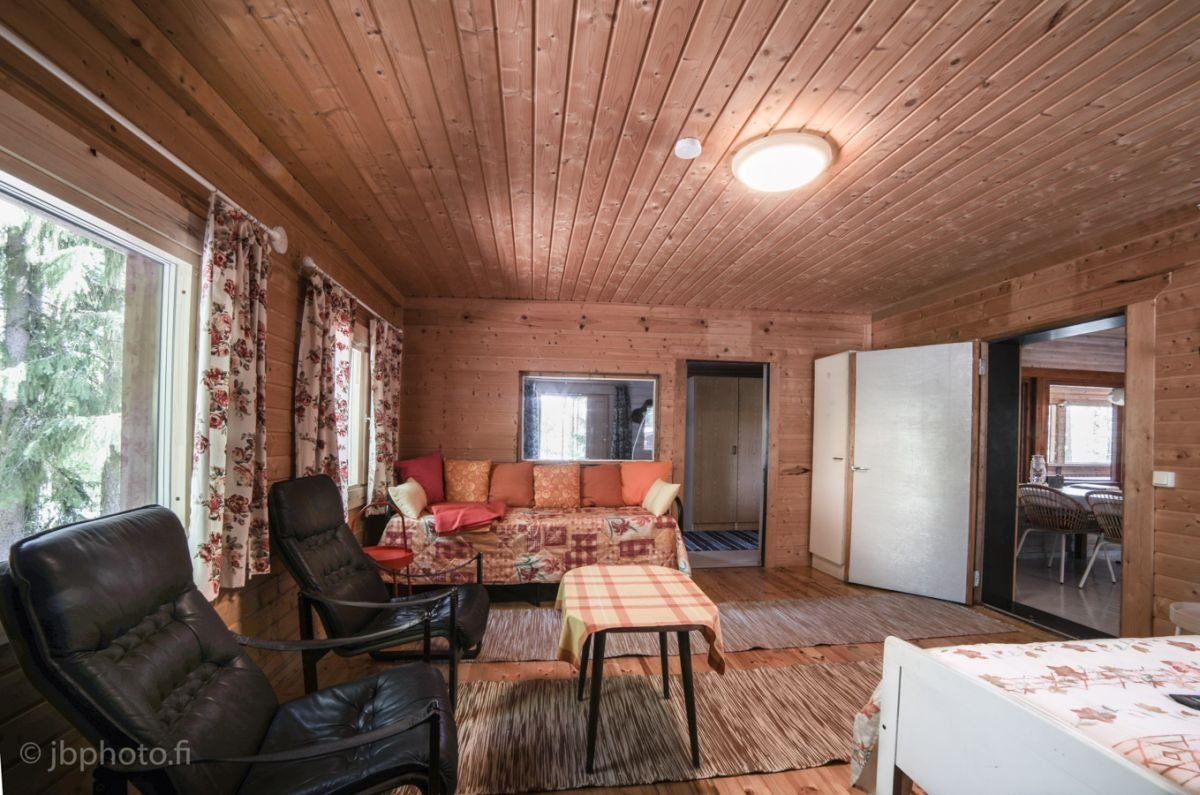 Nestled within the enchanting Helvetinjärvi National Park, Haukkajärvi cottage offers a cozy retreat for up to six guests, ideal for families and friends seeking a tranquil escape. Located just 28 kilometers from the charming town of Ruovesi, this picturesque cottage allows you to immerse yourself in nature, surrounded by stunning vistas and serene waters at Haukkajärvi’s Vastuunlahti. The inviting ambiance of the cottage is enhanced by its own private terrace, complete with an outdoor dining area where you can savor your meals while soaking in the breathtaking surroundings. A newly added dock invites leisurely moments by the water, whether you’re enjoying a peaceful morning or indulging in an evening of fishing.