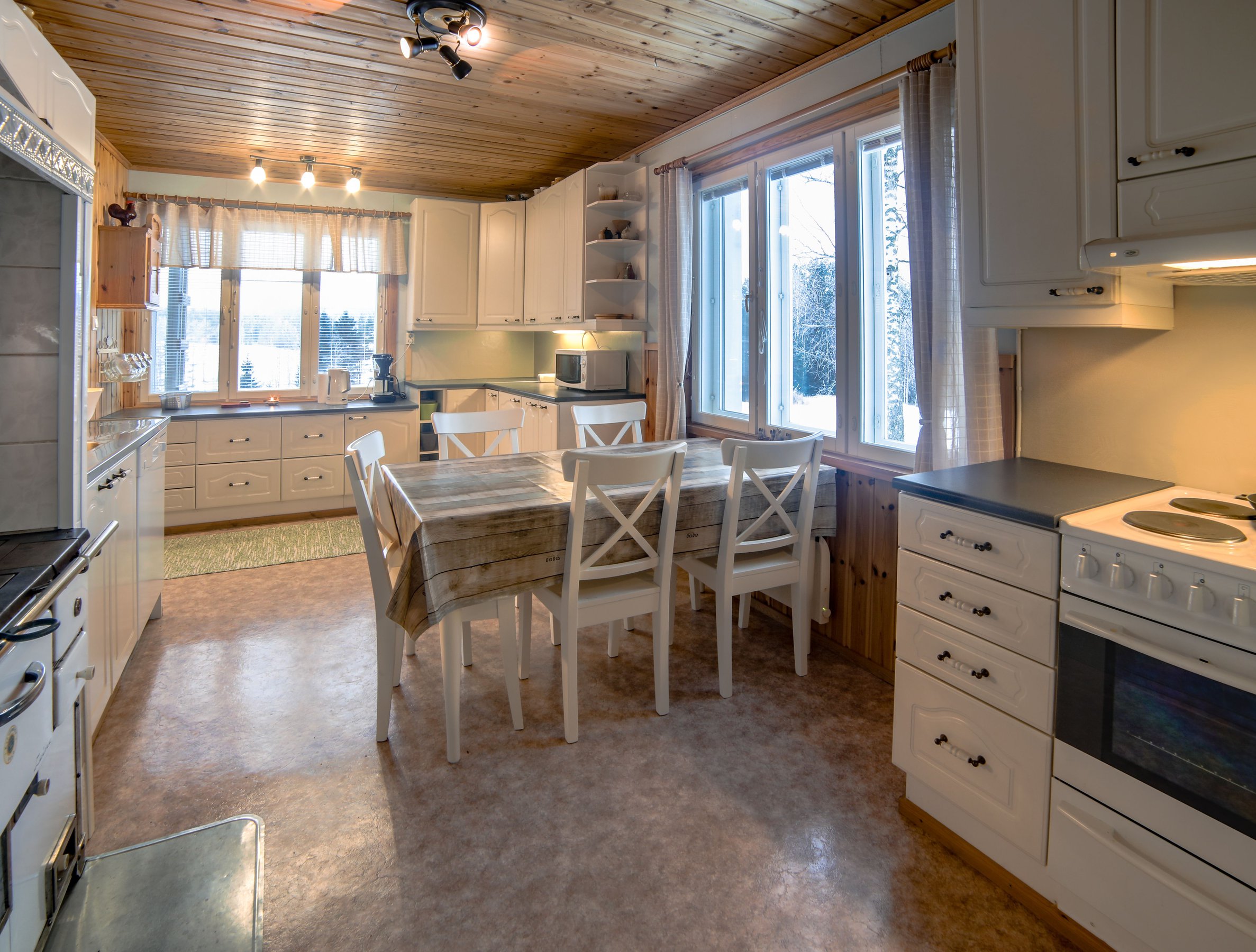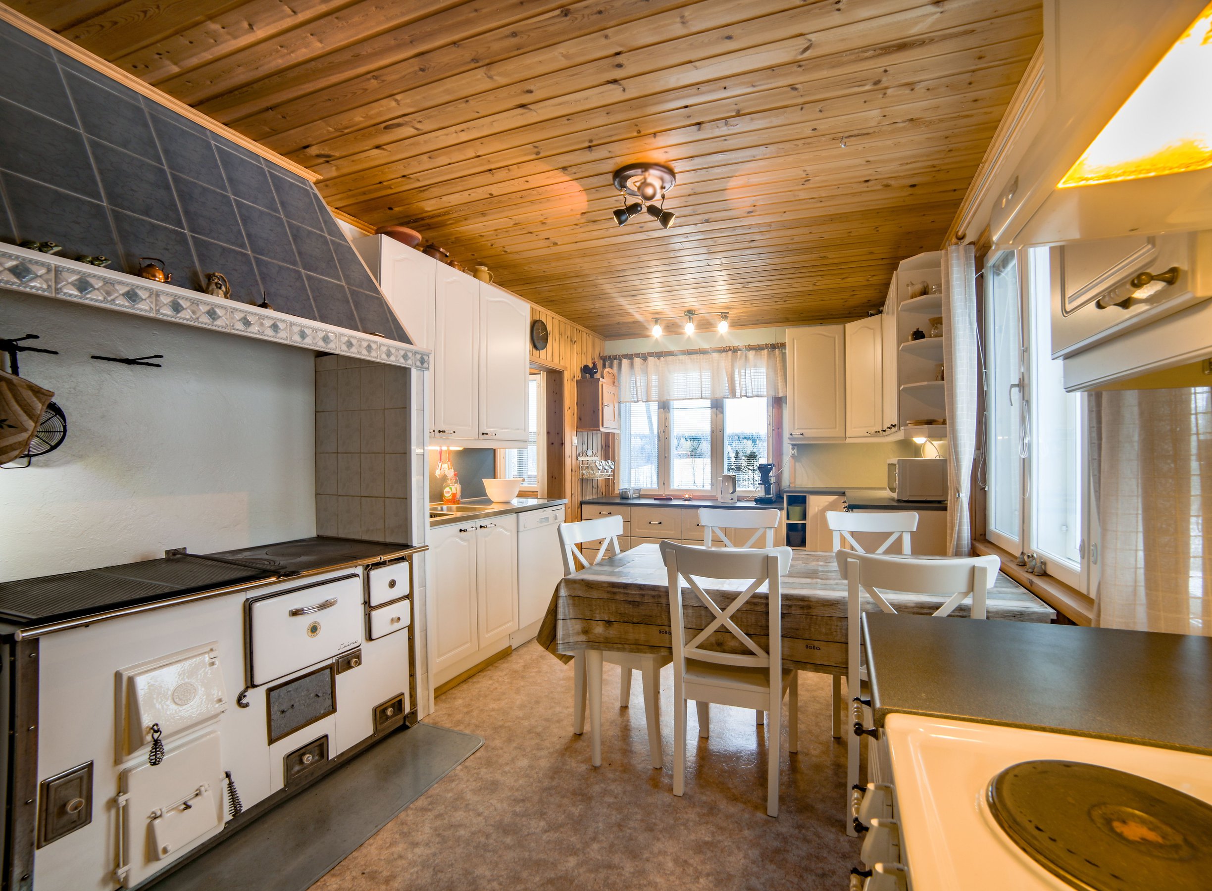 Welcome to Paukkila, a meticulously renovated farmhouse that beautifully blends rustic charm with modern amenities, providing an idyllic retreat for families or friends seeking a serene getaway. Nestled just 28 kilometers from the nearest town of Ruovesi, Paukkila offers a peaceful escape where the lush Finnish landscape meets contemporary comfort. This spacious two-story cottage, built in the 1950s and fully updated in the 2000s, accommodates up to ten guests, making it the perfect choice for gatherings or celebrations.