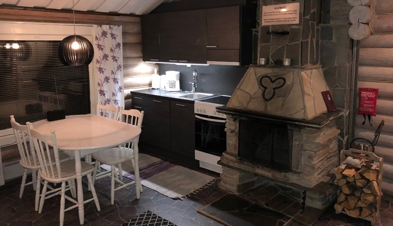 Designed to accommodate 4 to 6 guests, the bright interior of Sointu Mökk features an inviting open-plan living area and kitchen, thoughtfully equipped with a dishwasher and a washing machine for your convenience. The two cozy bedrooms promise restful nights, while the warm ambiance of the open fireplace beckons for intimate gathering moments after a day of adventure. Step outside to discover the covered terrace, a perfect spot for enjoying your morning coffee or an evening glass of wine while soaking in the surrounding beauty.