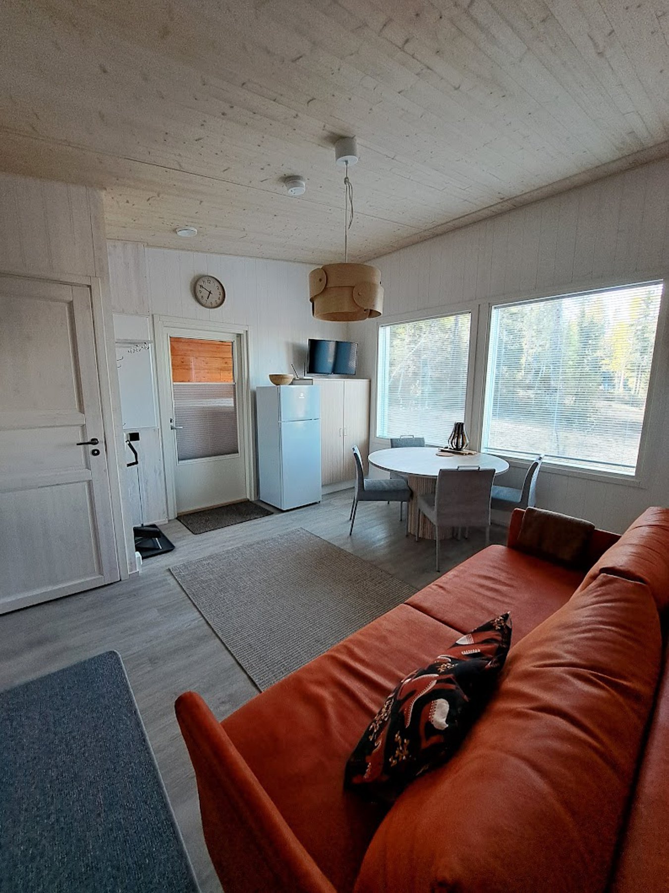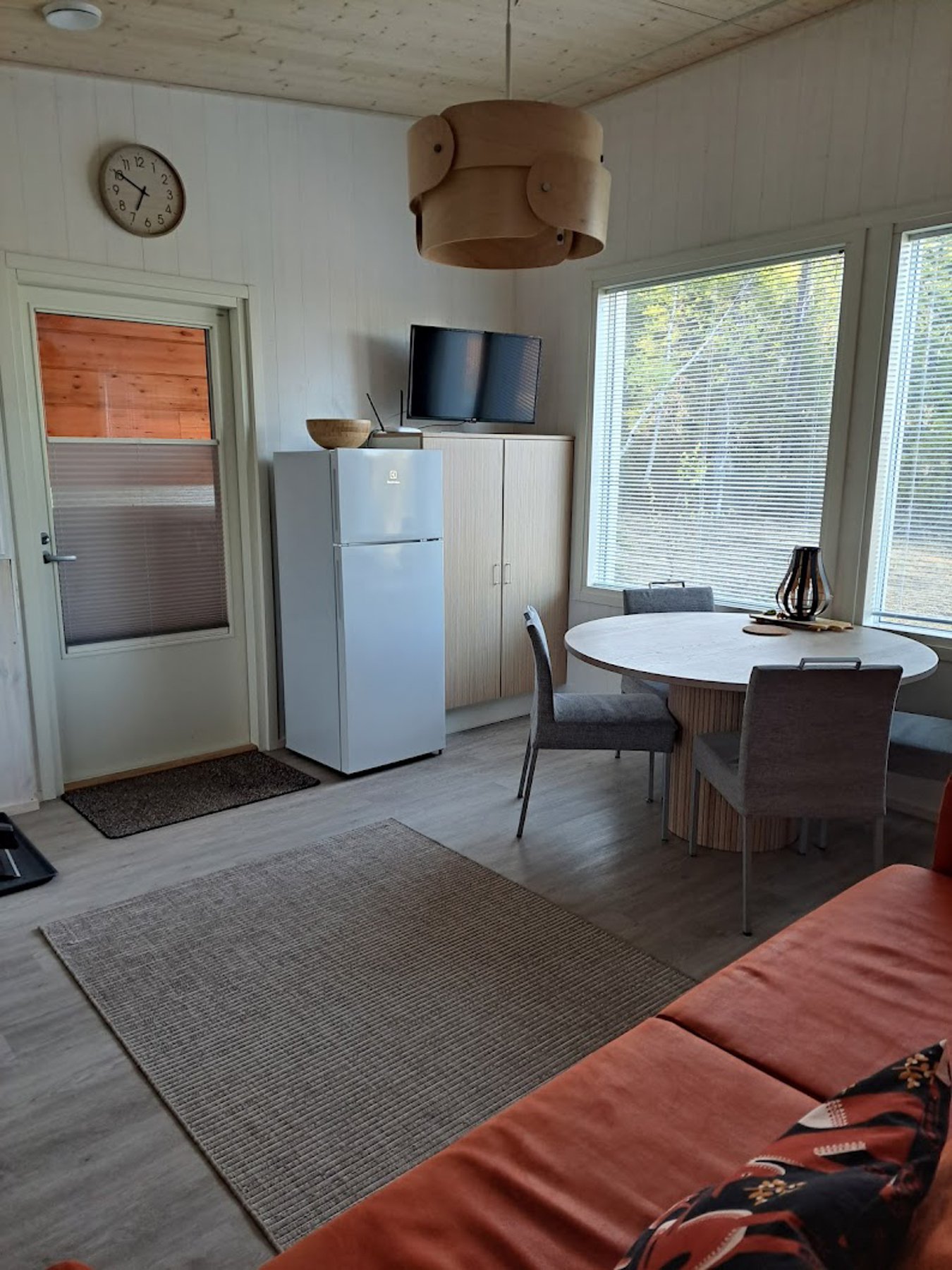 Built in late 2021 and featuring a cozy 50m² layout, Tellervo has been thoughtfully designed to ensure your utmost comfort. With two well-appointed bedrooms, a stylish open-plan living area complete with a well-equipped kitchen, and a private bathroom, this charming retreat accommodates up to six guests, making it perfect for family getaways or a peaceful retreat with friends. Every detail has been considered, from the electric sauna and pristine shower facilities to the luxurious outdoor hot tub, always keeping the water at a soothing 37 degrees for your relaxation.