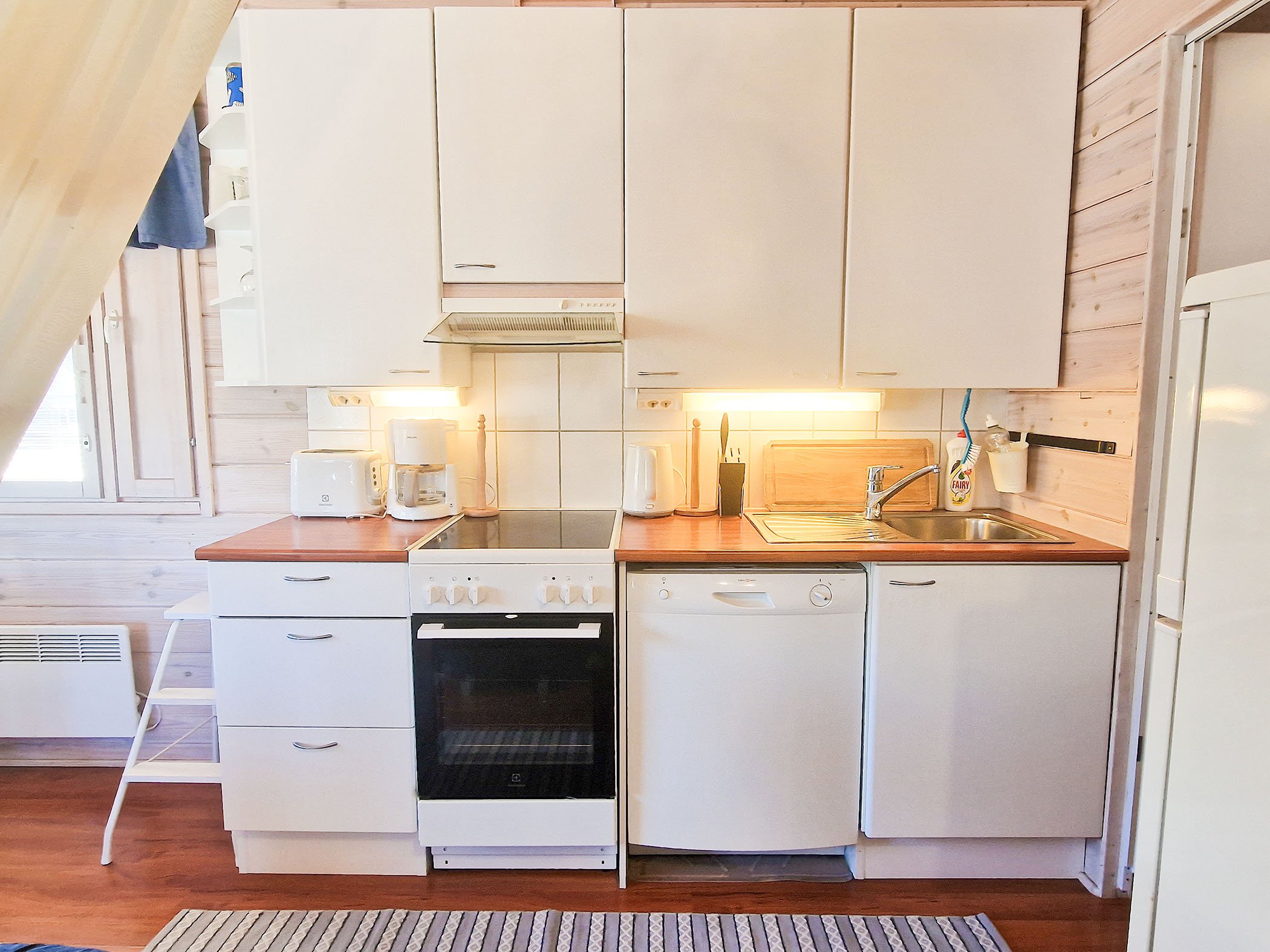 Upon arrival, you will appreciate the premium cleaning service that guarantees efficient upkeep and well-maintained amenities, ensuring a clean and welcoming atmosphere contributes to your relaxation. The spacious terrace invites you to enjoy leisurely breakfasts in the sun or evening barbecues with good company, while the lodge’s charming decor and partnership with nature provide an atmosphere of tranquility and comfort. With modern conveniences like WiFi, a dishwasher, and a washing machine at your disposal, Villa Himoslupiini 2 is equipped to meet all your vacation needs.