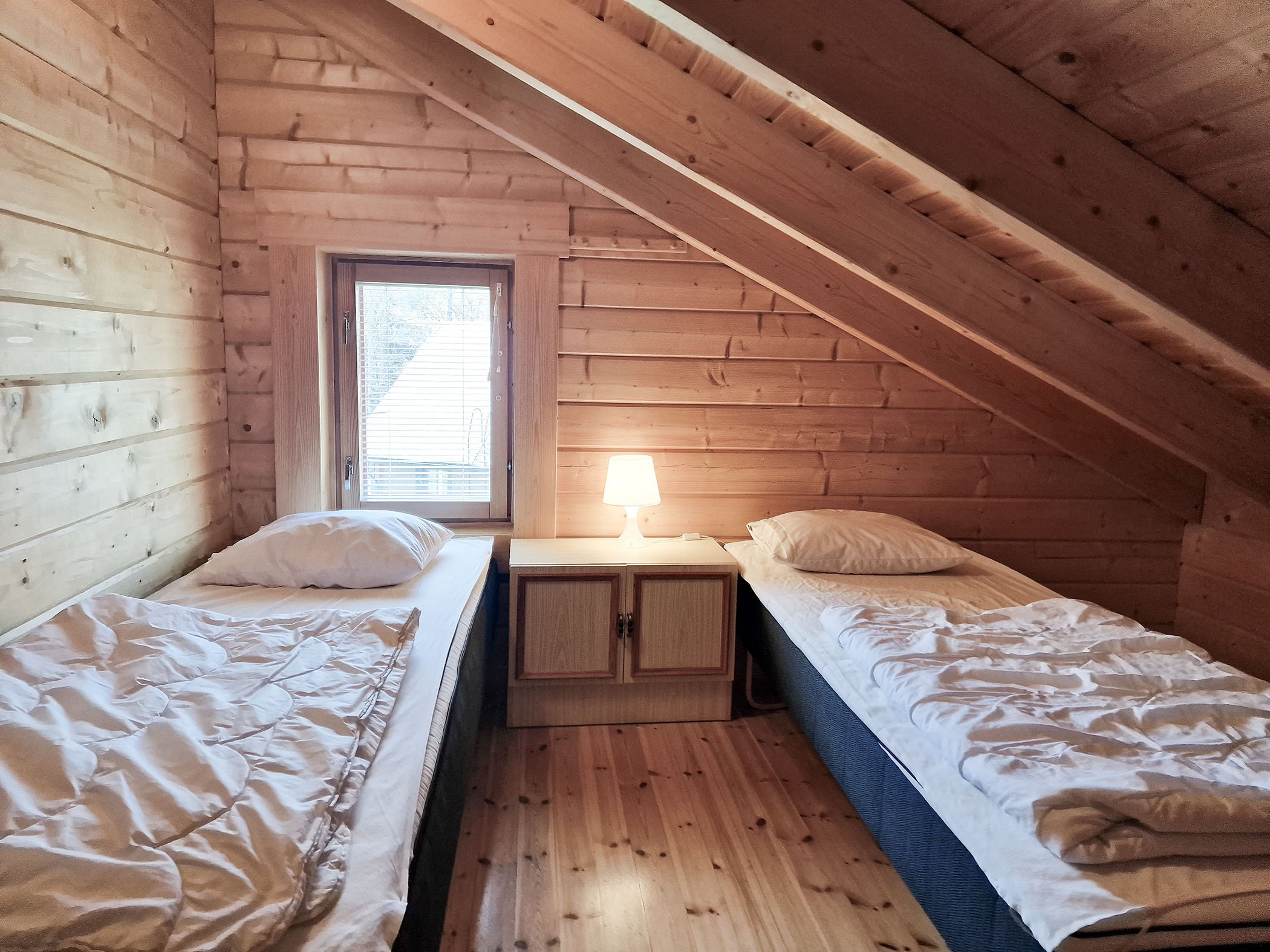Nestled in the enchanting Himoslaakso region, Villa Persikka offers a charming retreat for those seeking adventure and relaxation alike. This cozy semi-detached cottage, designed to accommodate up to eight guests, features 75 square meters of inviting living space complemented by an additional 30 square meters in the loft. With a backdrop of beautiful illuminated slopes in the winter, the large windows invite natural light and breathtaking views inside, creating a warm and welcoming atmosphere.