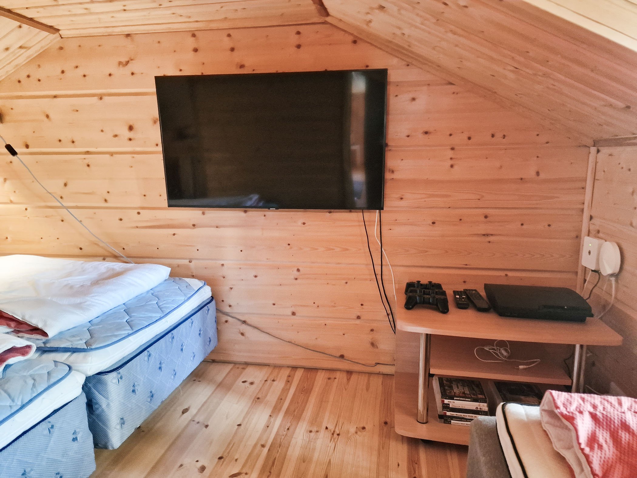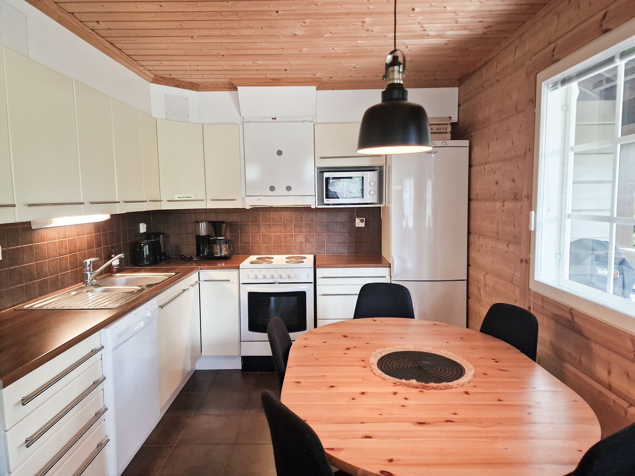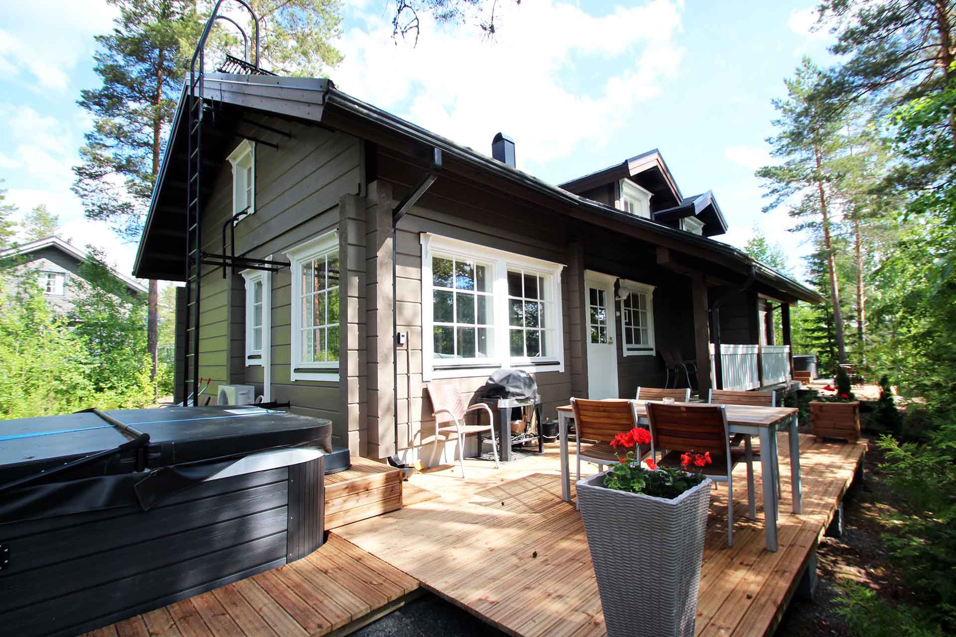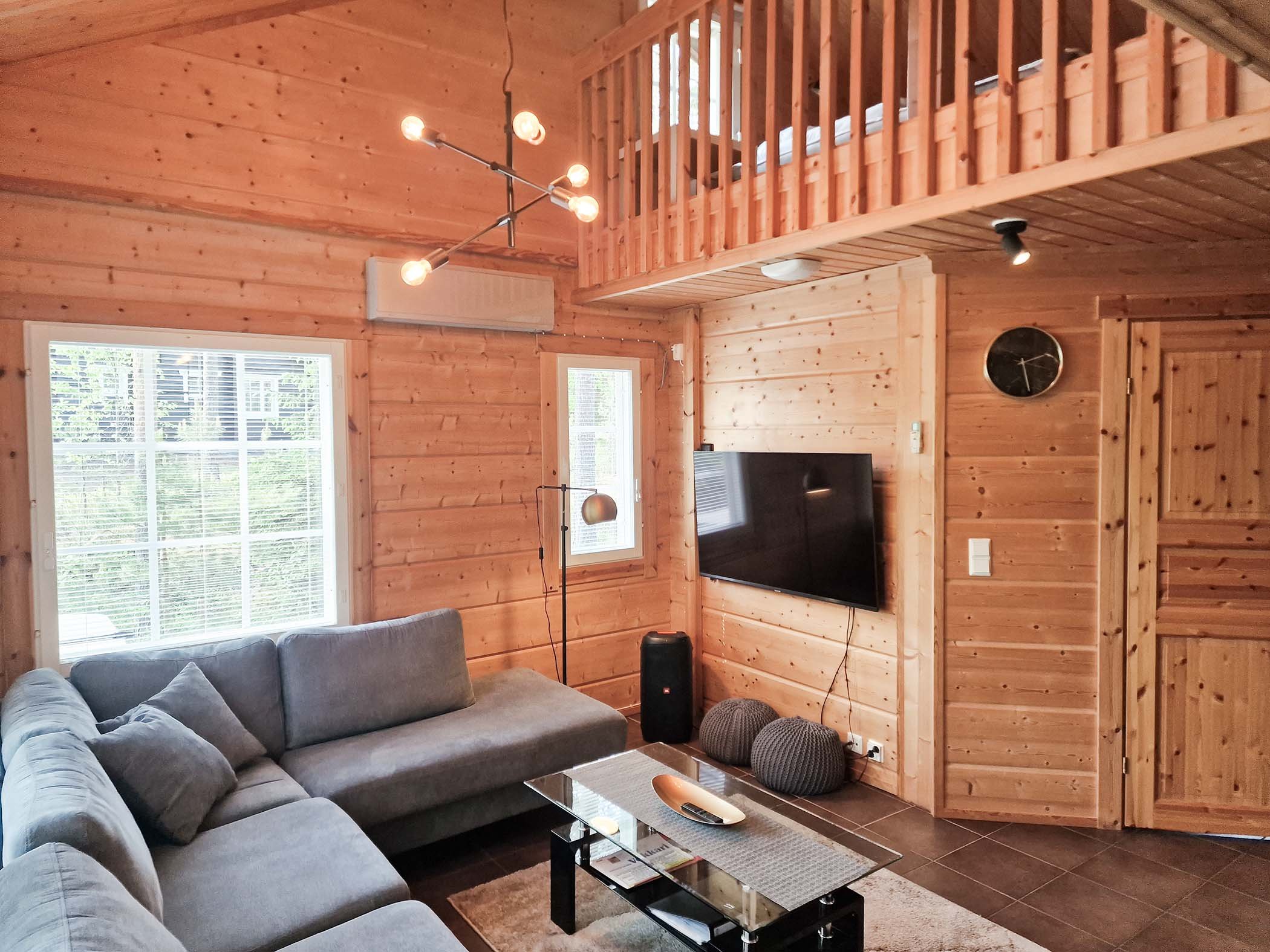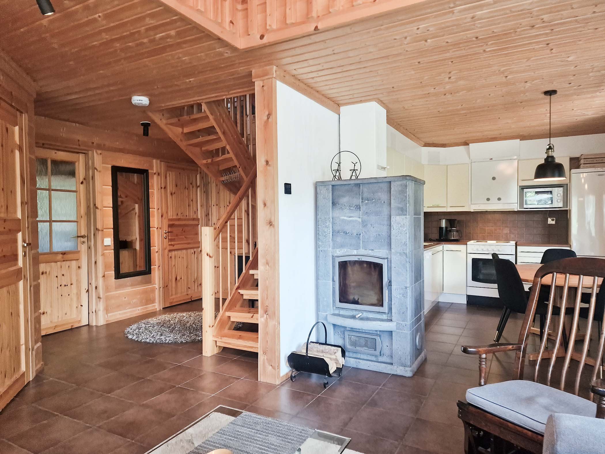 Inside, the cottage boasts a comfortable and stylish atmosphere with two cozy bedrooms that can accommodate up to seven guests. The living space is equipped with modern amenities, including high-speed WiFi, two TVs, and a Playstation 3 with games for entertainment. For those who enjoy a culinary experience, the fully equipped kitchen includes a dishwasher and modern appliances, making meal preparation a breeze. Indulge in outdoor grilling on the newly furnished terrace with a premium Weber electric grill, a perfect setting for alfresco meals or evenings spent basking in the tranquility of the Finnish wilderness.